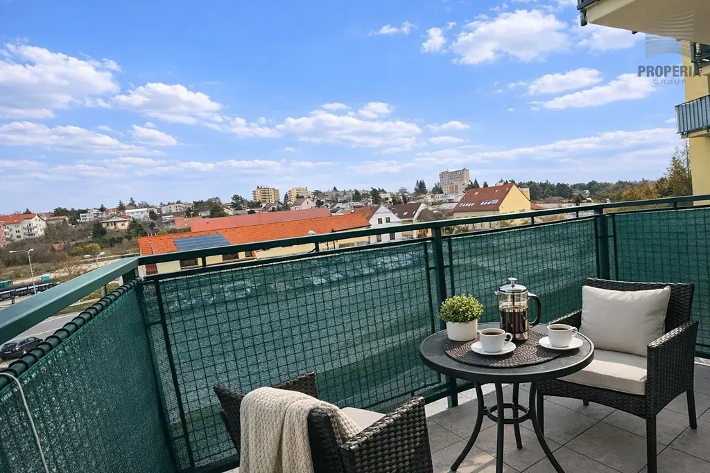 Velkým benefitem je balkon s hezkým výhledem, ideální pro ranní kávu nebo odpočinek po práci. Díky dostatku úložných prostor působí byt vzdušně a uklizeně.