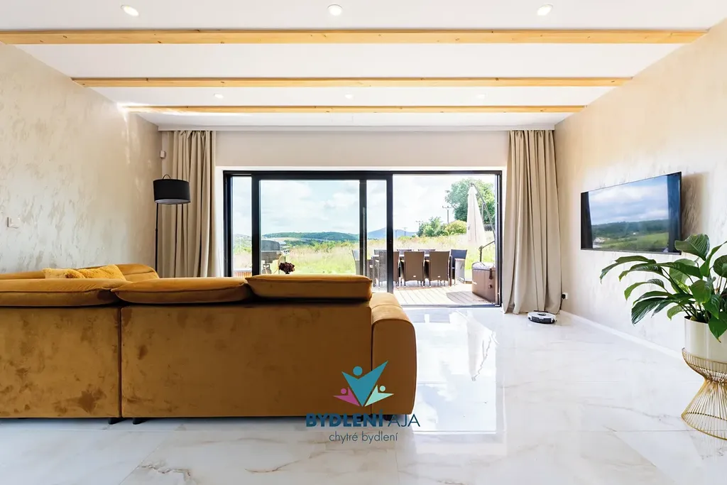 Jedná se o precizní novostavbu a investor kladl důraz na každý detail. Konstrukce stavby zajišťuje velmi příhodné klima pro alergiky a dům je zdravotně velmi prospěšný. Podlahové topení v přízemí, alarm, parkování pro čtyři auta. Možnost krátkodobého pronájmu za účelem testování kvality bydlení. Krásný výhled a dopravní obslužnost. Dojezd Praha 45 minut.
