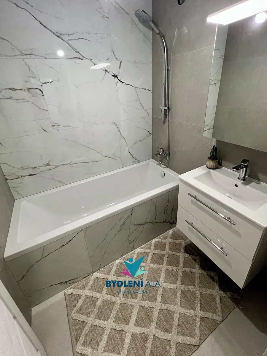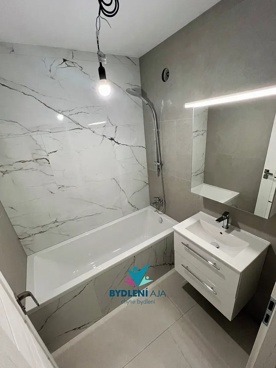 Byly zcela vyměněny veškeré elektrické a vodovodní rozvody, precizně vyrovnány stěny a zalité nové podlahy. Veškerá sanita je nová, s připravenými vývody pro pračky a další domácí techniku.