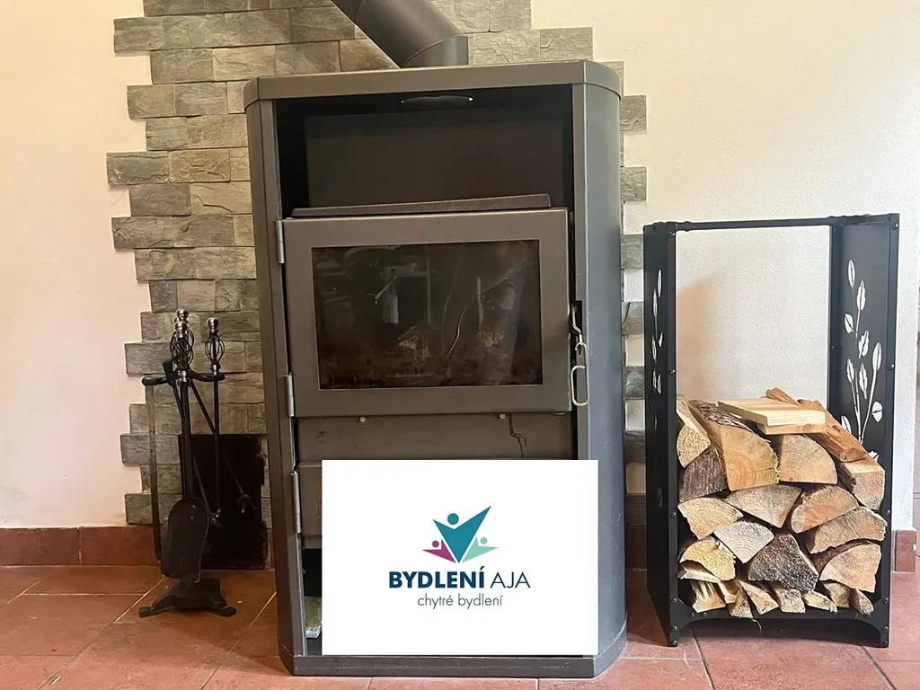 Dispozice zahrnuje čtyři ložnice, prostorný obývací pokoj s krbem, kuchyň s jídelním koutem a luxusní koupelnu.