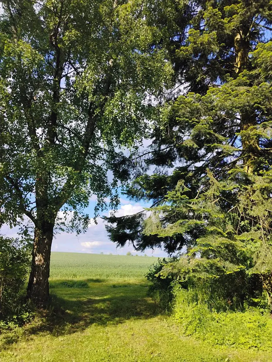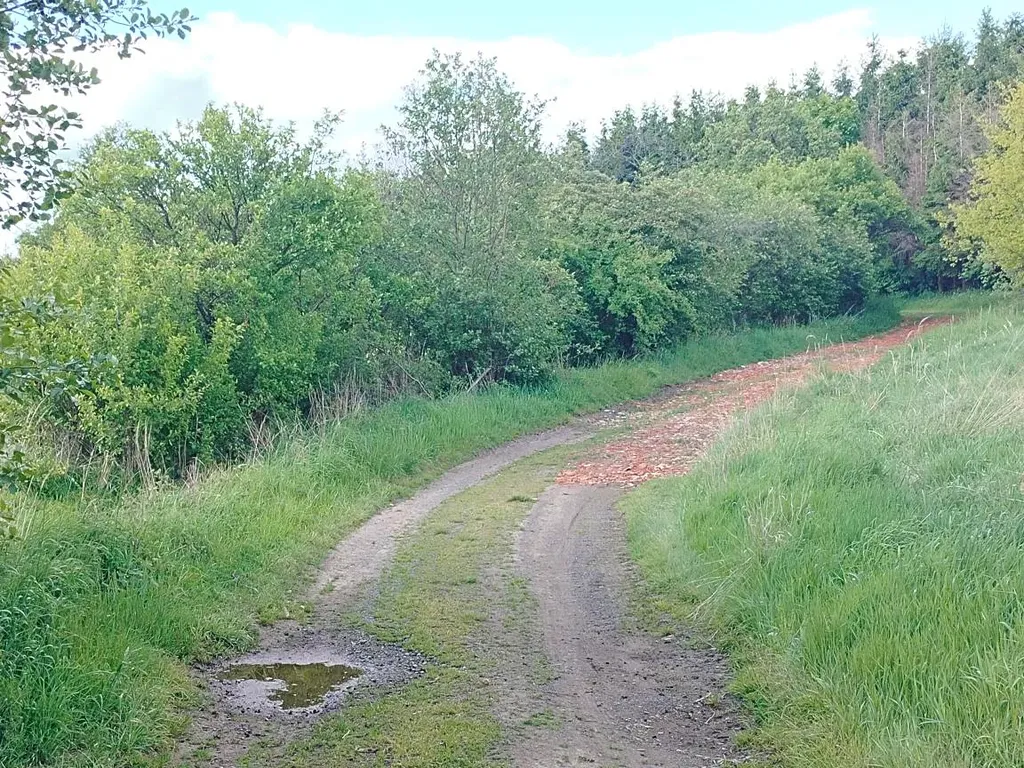 Přístupová cesta k chalupě je po polní, nezpevněné cestě.