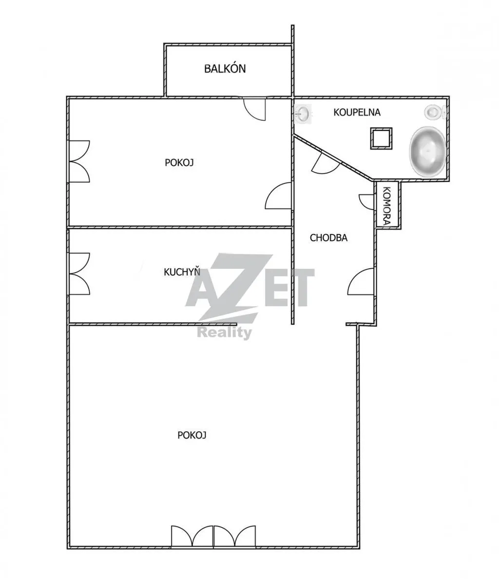 Dispozice: prostorný pokoj s plovoucí podlahou, samostatná kuchyň, koupelna s rohovou vanou se zděným jádrem.