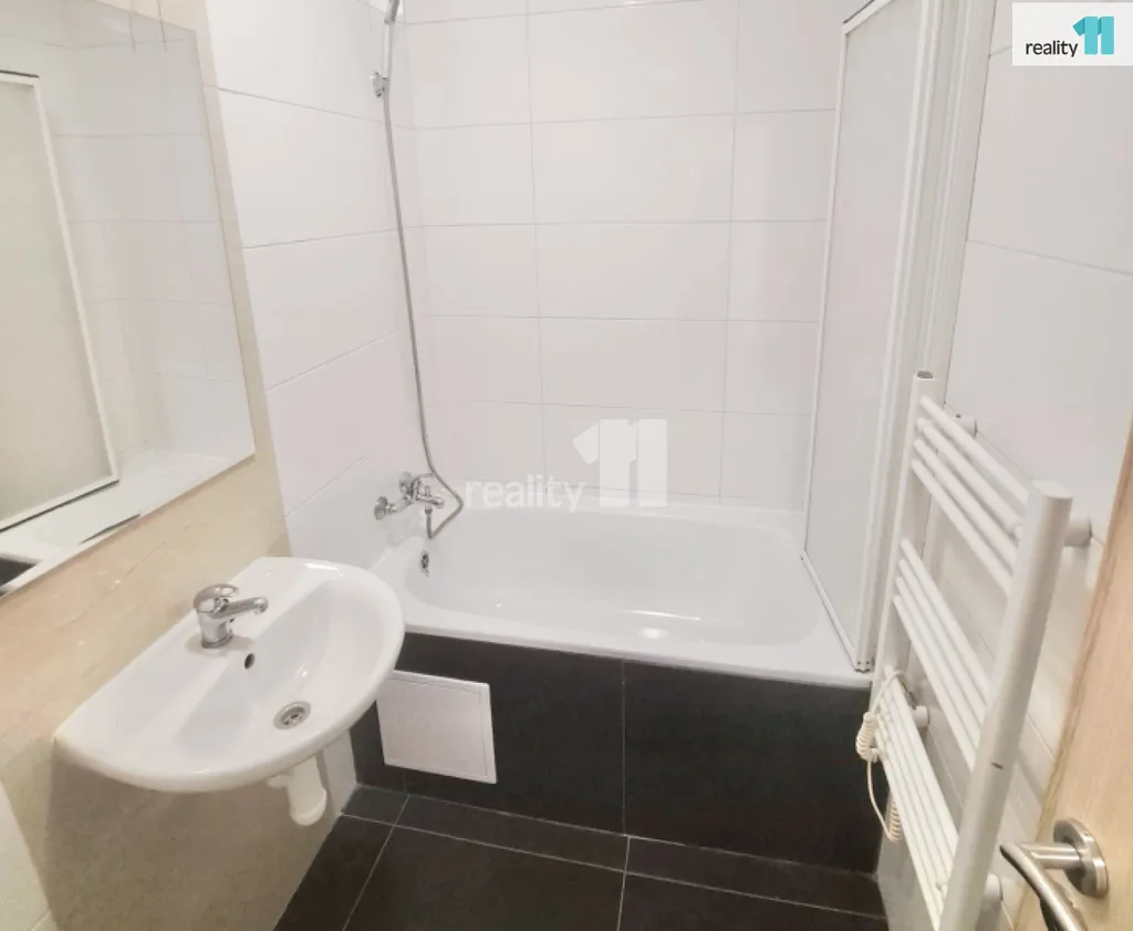 Koupelna s vanou, zrcadlem, přípojkou na pračku, bojlerem na ohřev teplé vody, WC.