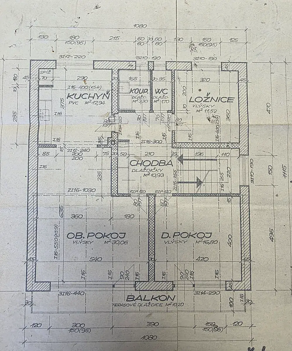 otevřeným schodištěm do II. NP /1. poschodí/