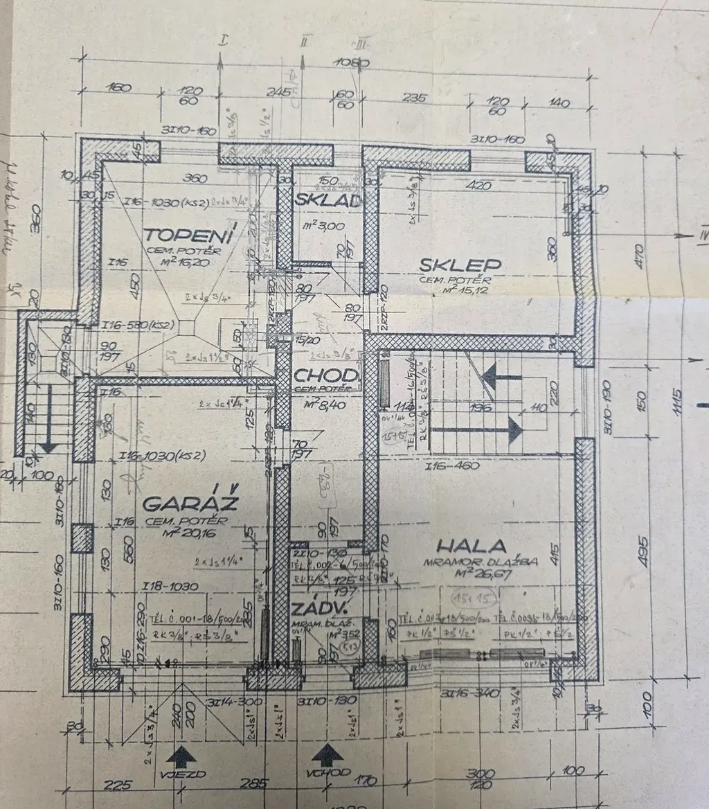 -přízemí /1. NP/ - garáž, kotelna, prádelna, sklep, zádveří, hala s