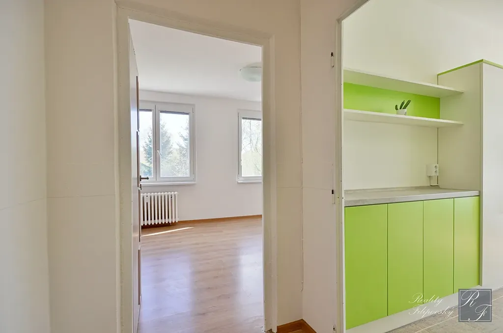 Bytová jednotka má zděné jádro, kuchyňskou linku vybavenou myčkou nádobí a velmi se mi líbí prostorná lodžie s výhledem do zeleně. Velkou výhodou je také šatna, i předsíň s vestavnou šatní skříní.