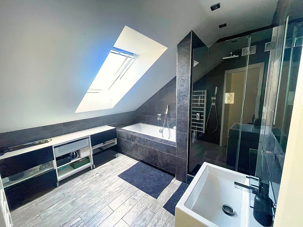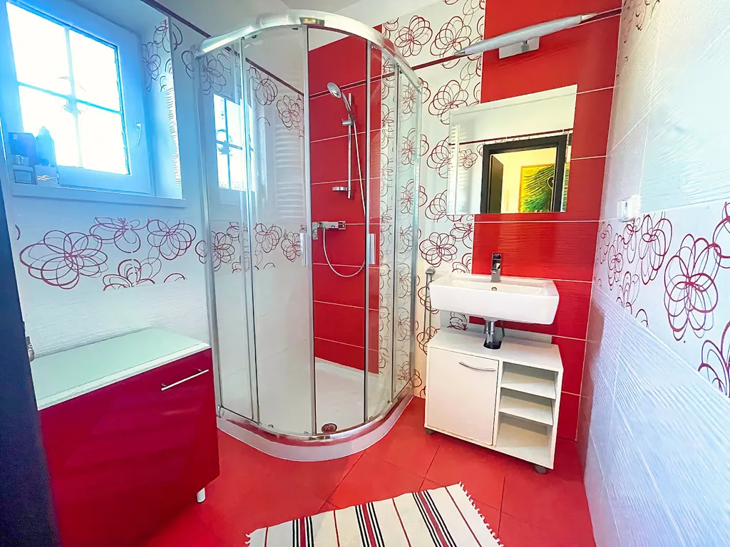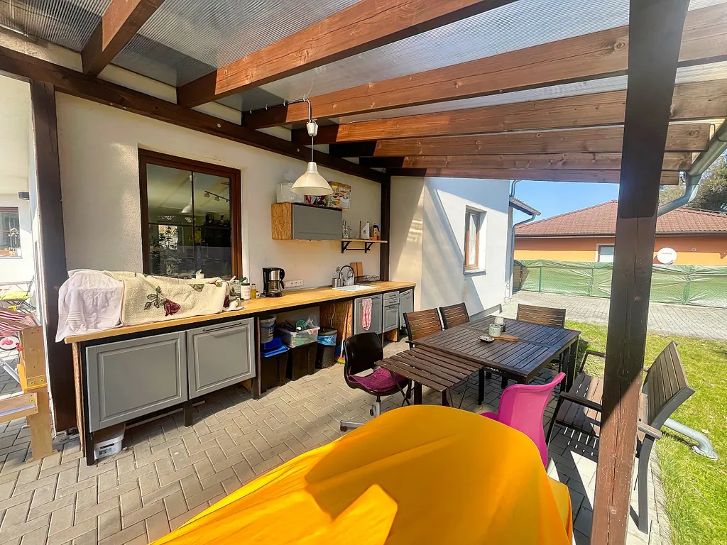 Nemovitost se skládá z přízemní části s přímým výstupem na zahradu a z prostorného podkroví s velkou lodžií. Obě části mohou být zcela odděleny díky dvěma samostatným vchodům do domu na dva byty a dům tak může sloužit jako bydlení pro dvě rodiny nebo lze třeba část domu pronajímat. Každá část má svou moderní kuchyňskou linku, koupelnu i toaletu.