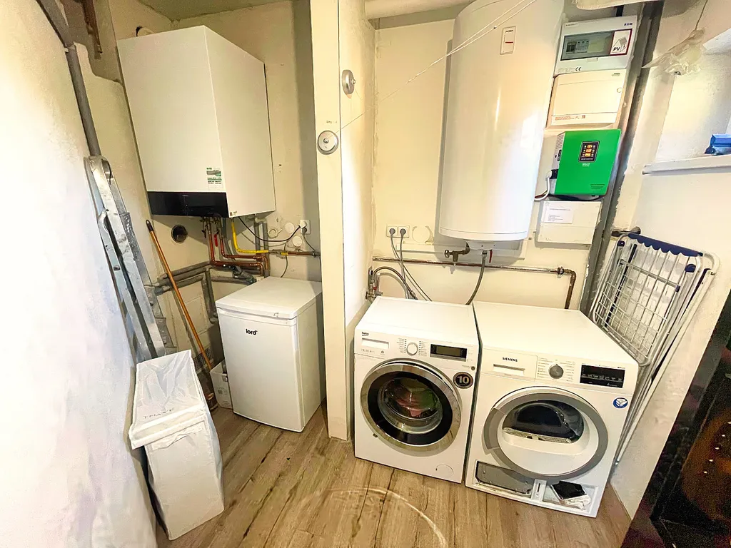 Dům je vytápěn novým plynovým kotlem, které zajišťuje i ohřev vody. V technické místnosti je dále umístěn samostatný bojler, který nahřívá vodu pomocí solárních panelů na střeše. V hlavní obytné části je dále možnost instalace krbu či krbových kamen na samostatný komín. Technická místnost je propojena s jižně orientovanou lodžií a připravena na možnou instalaci fotovoltaiky na zábradlí lodžie.