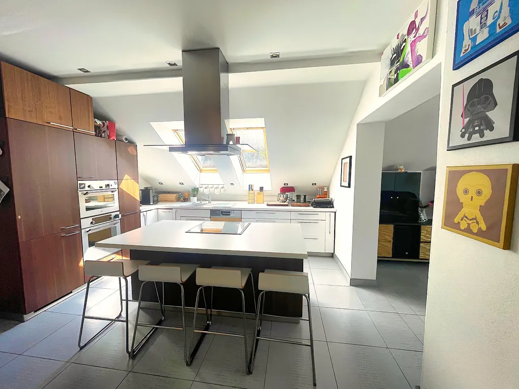V podkroví navazuje na schodiště velký prostor s vestavnou kuchyňskou linkou a kuchyňským ostrůvkem, na který navazuje obývací pokoj s výstupem na lodžii. Na lodžii lze vystoupit i ze samostatné ložnice. Dalšími místnostmi jsou velký dětský pokoj, koupelna s vanou i sprchovým koutem a samostatná toaleta.