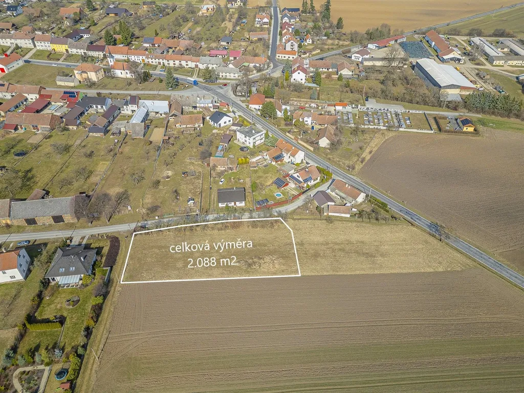 Vyjímečné stavební místo na okraji obce Vícov, které se skládá ze 4 na sebe navazujících pozemků o celkové výměře 2.088m2.