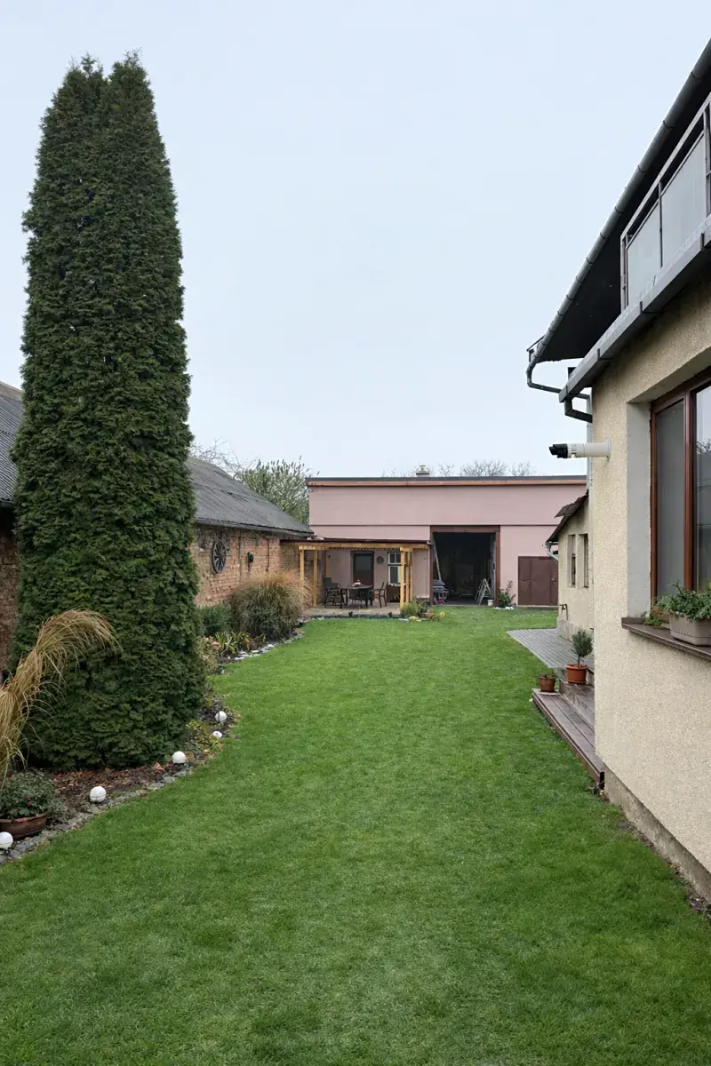 Součástí je bývalý vejminek, ve kterém je vybudována letní kuchyň a další místnost využívaná jako kancelář, vhodná například pro home office nebo podnikání (aktuálně není na fotografiích).