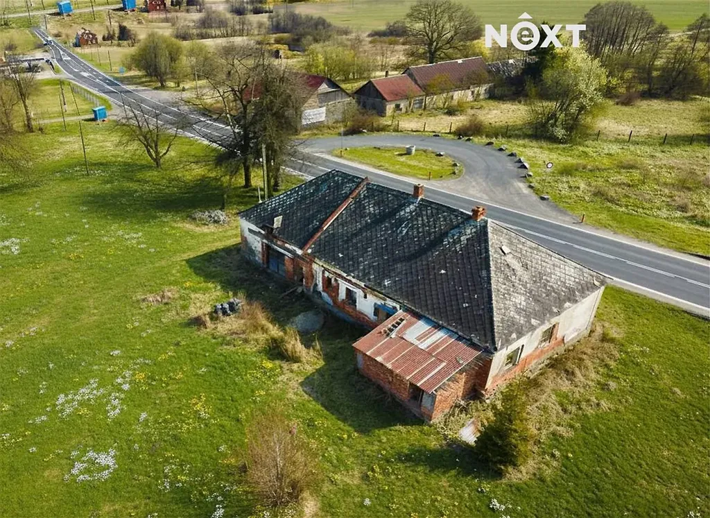 Dům z roku cca 1945, nepodsklepený, s jedním nadzemním podlažím. Dispozičně nabízí 6 místností, prostornou garáž/stodolu a menší přístavek v zadní části. Obytná část je postavena z pálených cihel, garáž/stodola má smíšené zdivo (cihla/kámen). Krov střechy je až v překvapivě dobrém stavu, stejně jako celková statika objektu, dům je také bez zjevných známek výrazné vlhkosti. Dům není v současnosti napojen na inženýrské sítě. Možné je připojení na elektřinu a vodovod před domem. Na pozemku je také vlastní kopaná studna, která je však v současnosti nefunkční. Před domem prochází vedení datového kabelu Cetin.