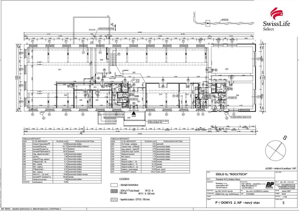 Ve 2. nadzemním podlaží najdete zasedací místnosti, kanceláře, kuchyňku a tři samostatné oddělené pokoje a sociální zařízení. Může sloužit jako ubytování pro dojíždějící zaměstnance.