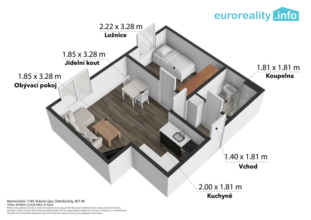 Prodej bytu 2+kk, 32,4 m² – Krásná Lípa, ul. Nemocniční