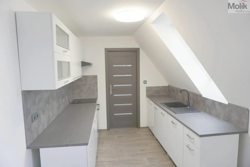 Jedná se o podkrovní byt, který prošel zdařilou, kompletní rekonstrukcí - nová kuchyňská linka včetně horkovzdušné trouby, varné desky, myčky.., nová koupelna se sprchovým koutem, keramickými obklady a dlažbou, nové podlahové krytiny, vnitřní dveře, střešní okna, izolace celého podkroví, nová elektroinstalace atd. ...........