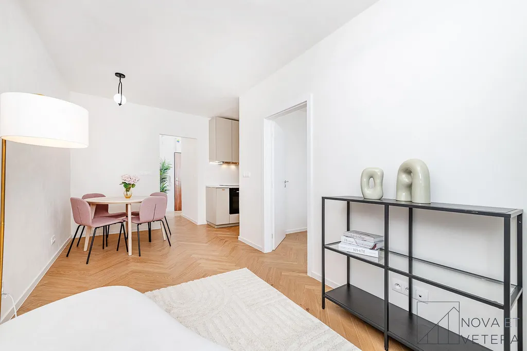 Byt právě prošel kompletní a kvalitní rekonstrukcí, která zahrnovala nové rozvody elektřiny, vody a odpadů, moderní dřevěné podlahové krytiny, obklady a dlažbu italské značky Marazzi a koupelnu se sanitou značky Grohe. Součástí bude také zcela nová kuchyňská linka vybavená vestavnými spotřebiči prémiové značky Bosch s prodlouženou zárukou 5 let. Byt je tedy připraven k okamžitému užívání ve vysokém standardu a bez nutnosti dalších investic.