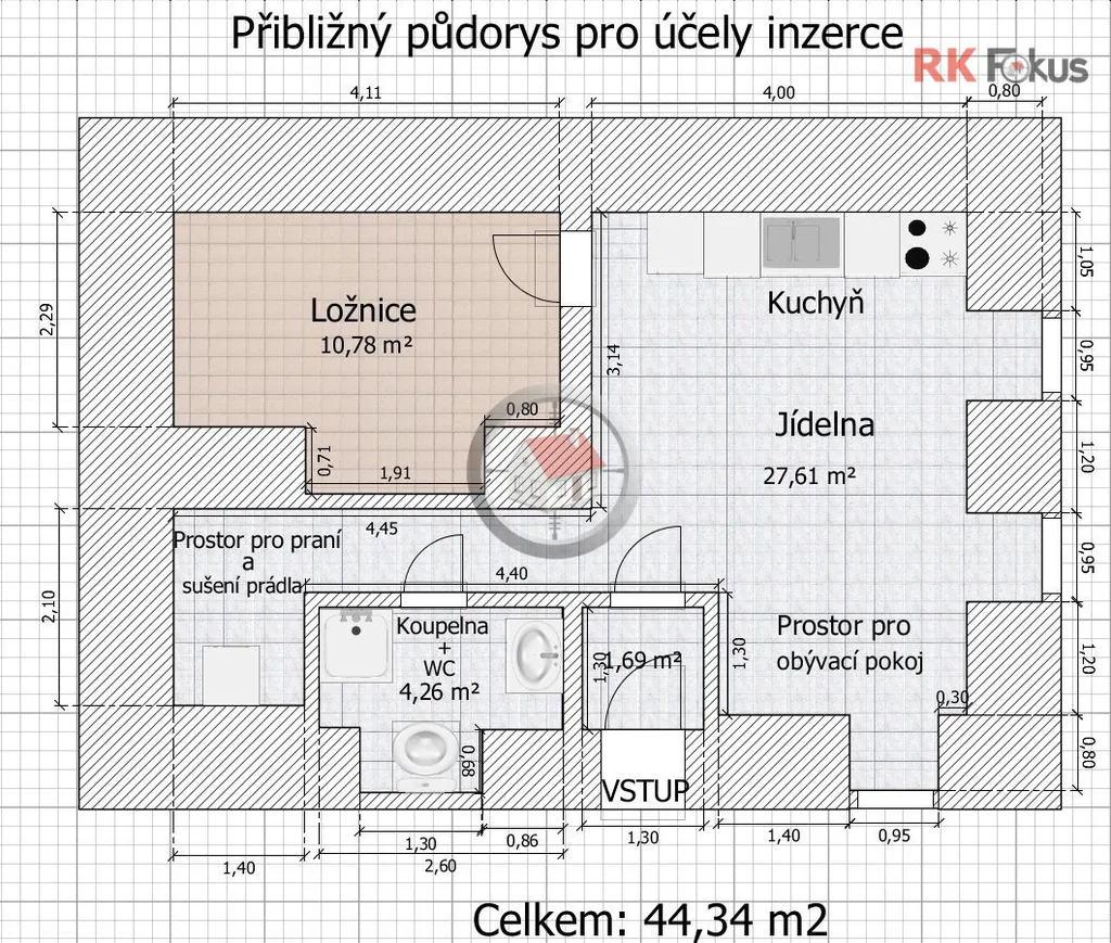 (+energie 3.000 Kč, + kauce 14.000 Kč, + provize RK 10.000 Kč)
