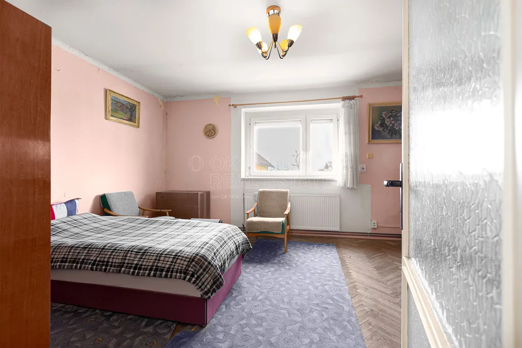 Interiér domu se skládá ze tří pokojů, které lze přizpůsobit dle vašich představ a potřeb. Dům je v dobrém stavu a již nyní nabízí částečné vybavení pro pohodlné bydlení. K dispozici je obrovský úložný prostor v podkroví, v podobě prostorné půdy, a také sklep o ploše cca 25 m², ideální pro uskladnění věcí. Součástí nemovitosti je i garáž, vhodná pro dílnu, která navíc disponuje servisním kanálem pro pohodlnou údržbu podvozku vašeho automobilu a stodola pro uschování zahradní techniky.