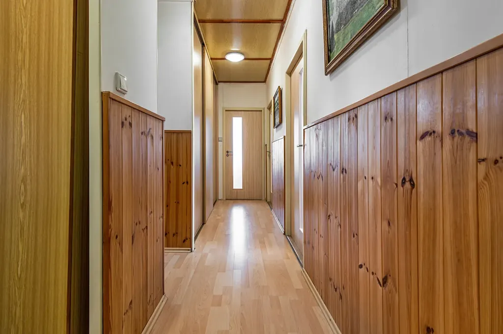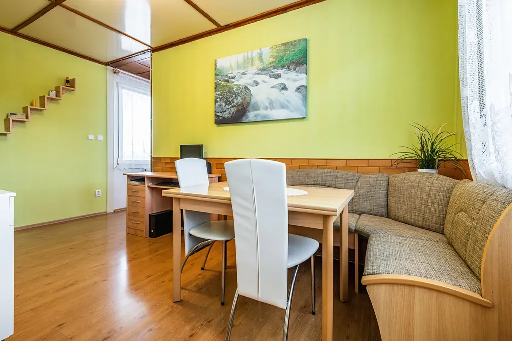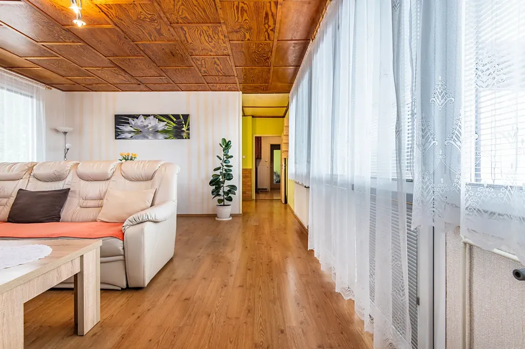 Dominantou domu je prostorný, vzdušný a světlý obývací pokoj, který poskytuje dostatek místa pro pohodlný rodinný život i setkávání s přáteli. Má okna na sever a na jih, je plný slunce celý den. Dispozice 4+1 nabízí dostatek soukromí pro každého člena domácnosti.