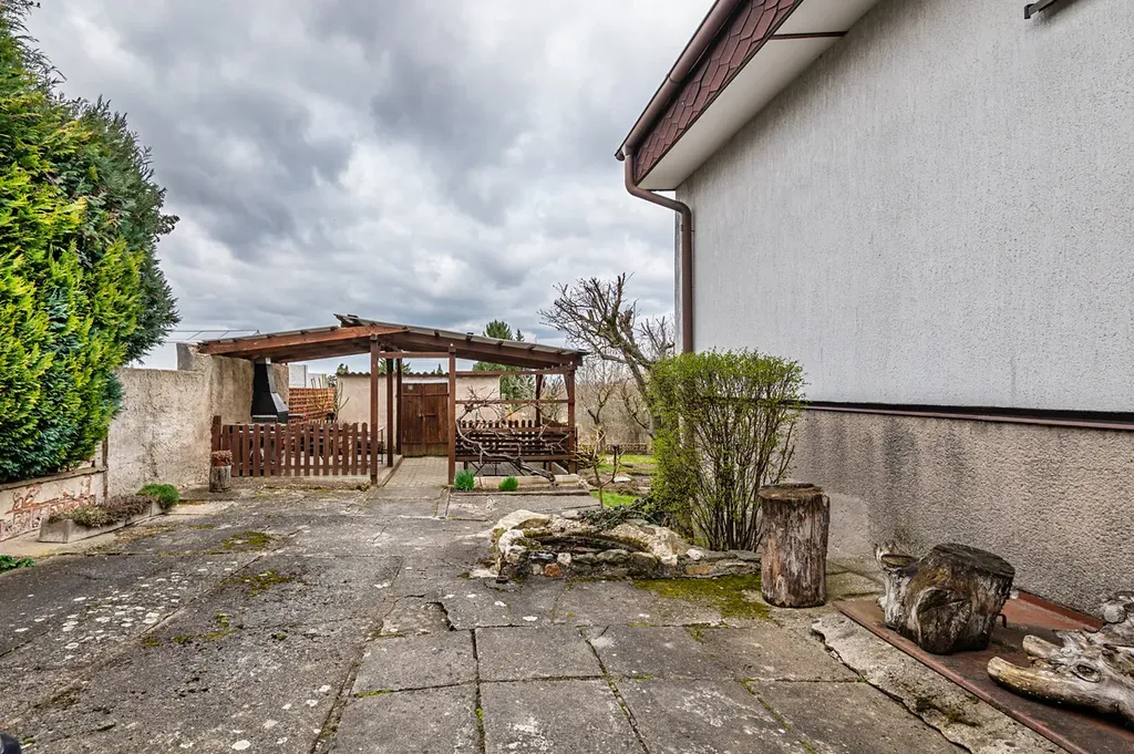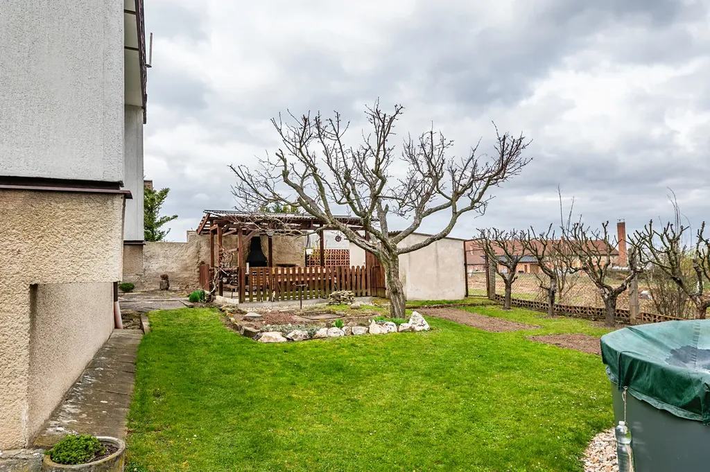 Na pozemku se nachází kryté venkovní posezení, které vybízí k relaxaci i posezení s rodinou či přáteli. Na zahradě jsou ovocné stromy, jež dotváří příjemnou atmosféru celého místa.