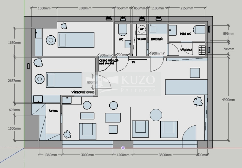 ✔ úklidová místnost a komora