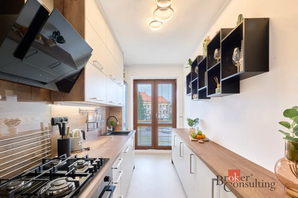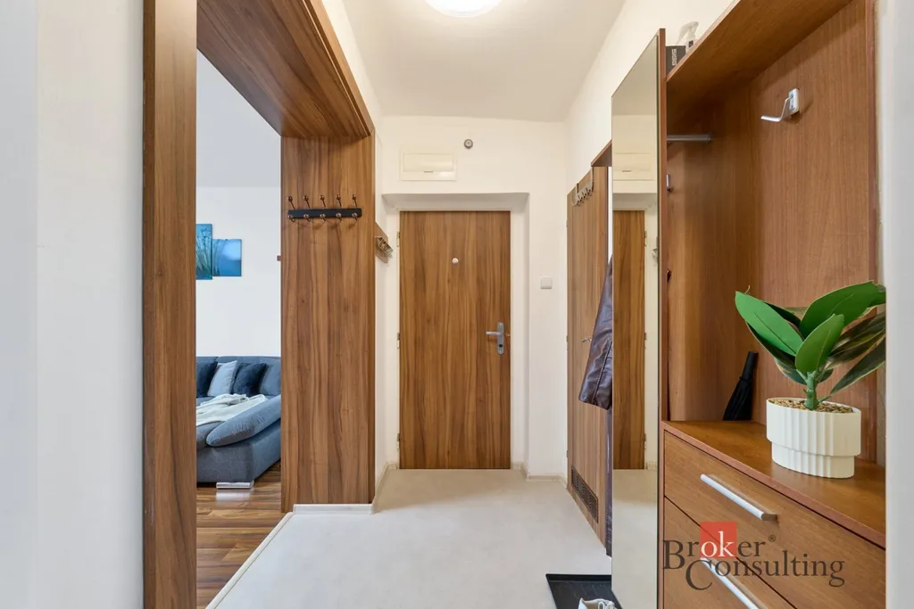 Byt je velmi prakticky řešený – neprůchozí pokoje, samostatná kuchyně a dostatek úložných prostor. Byt je možno pronajmout takto vybavený.
