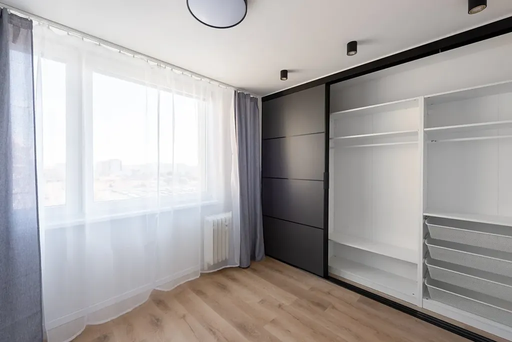 Vnitřní uspořádání - vstupní chodba (2,9m2) s úložnými prostory, samostatná neprůchozí ložnice (10,5m2) s velkou vestavěnou skříní, světlý obývací pokoj (15,6m2) napojený na kuchyňský kout, kde je k dispozici zánovní kuchyňská linka, která poskytuje dostatek pracovní plochy, úložných prostor a je plně vybavena vestavnými spotřebiči (pračka se sušičkou, myčka, lednice s mrazákem, horkovzdušná trouba, mikrovlnná trouba, sklokeramická deska). Moderní koupelna (2,9m2) v nadčasovém designu je vybavena dostatečně prostorným sprchovým koutem a wc.