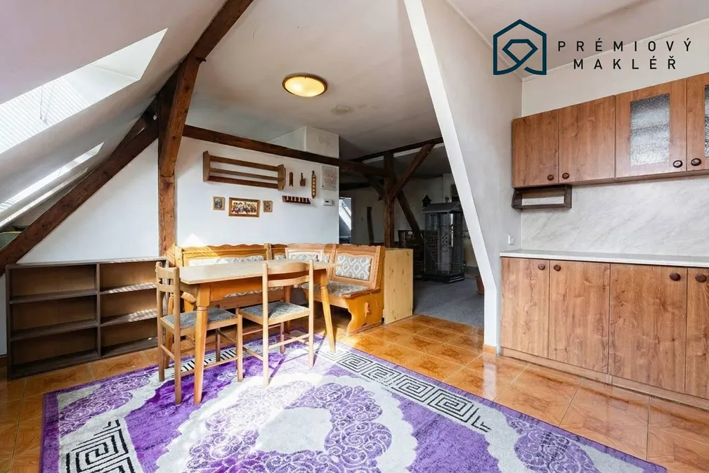 - Přízemí (cca 100 m²): dispozice 3+1 se samostatnou kuchyní a koupelnou
