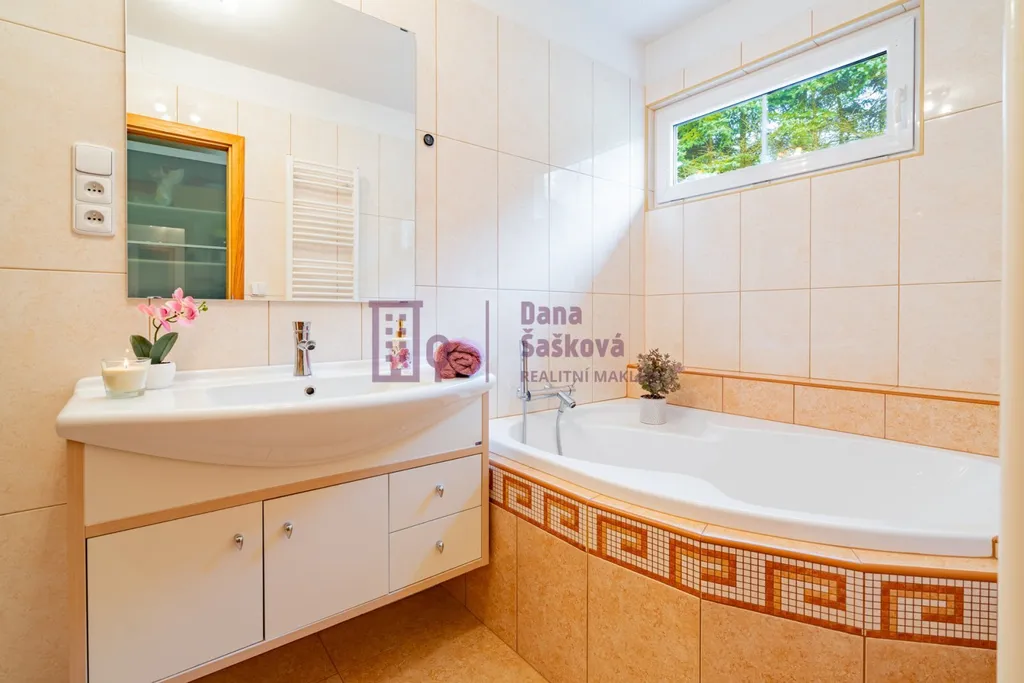 Na udržované zahradě se nachází bazén o objemu 25 m³ s protiproudem, pískovou filtrací, slanou vodou a tepelným čerpadlem, které umožňuje pohodlné prodloužení koupací sezóny. Dále je zde prostorná pergola, ideální pro letní posezení a relaxaci.