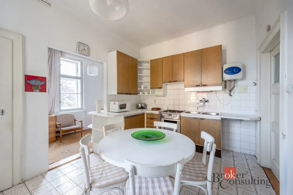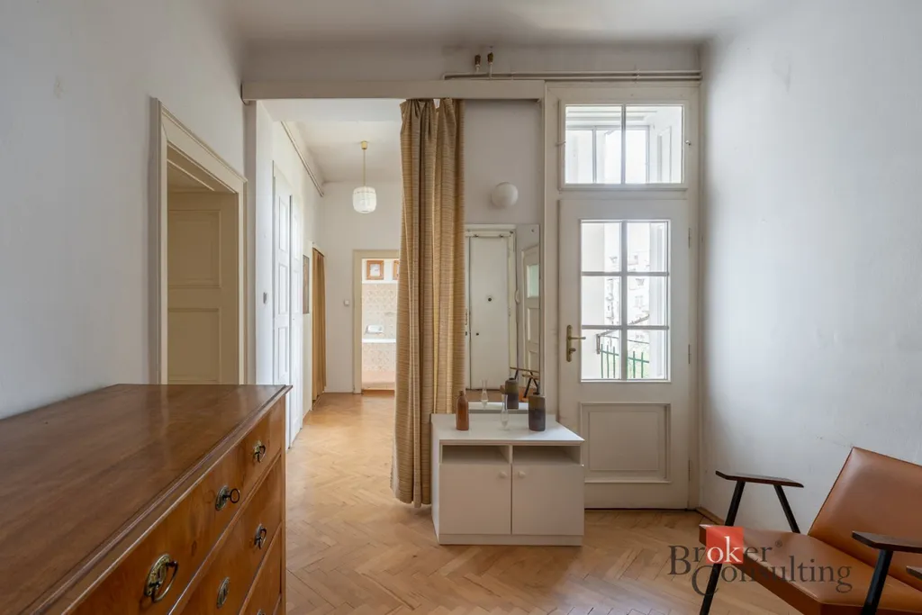 Byt si zachoval svůj původní charakter – kazetová okna, krásné parkety a velkorysé 3 metrové stropy. Je udržovaný a ihned připravený k nastěhování.