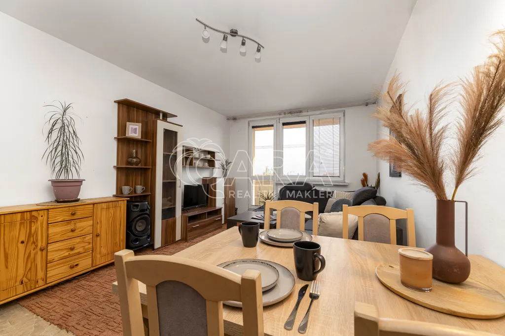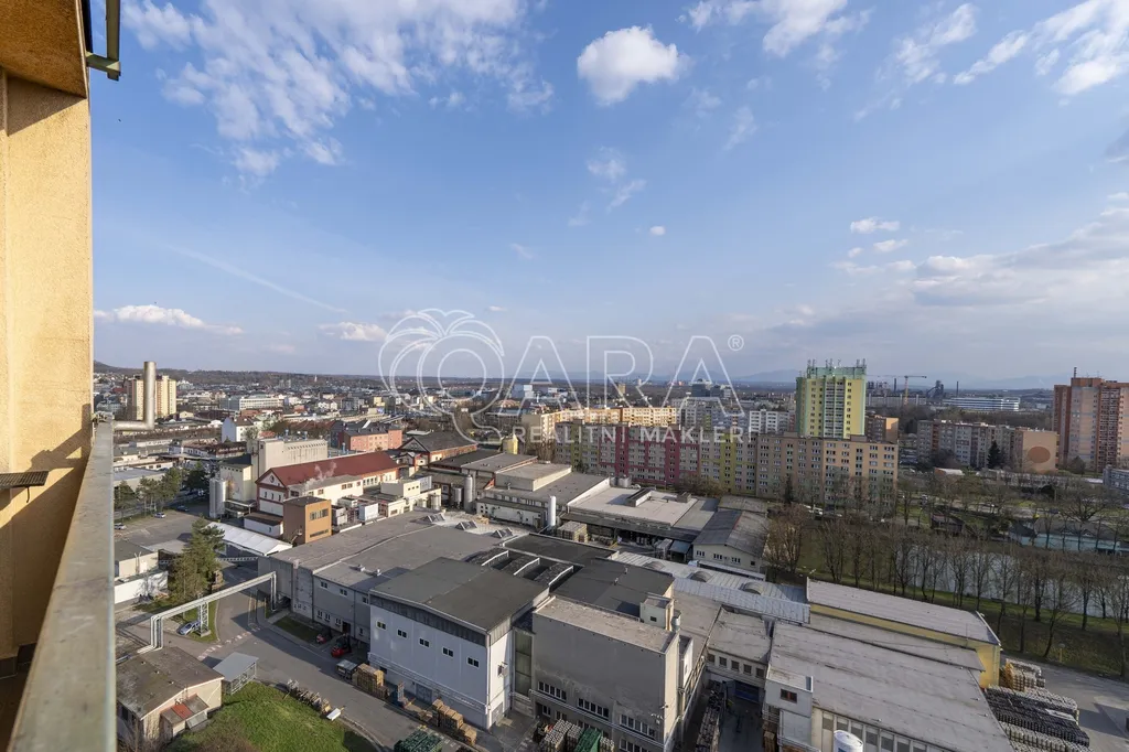 Jedním z benefitů bytu je jeho umístění v nejvyšším patře, které nabízí krásný výhled na Ostravu i Beskydy. Díky balkonu, který se otevírá směrem ven, působí byt opticky vzdušněji a nabízí příjemné rozšíření prostoru, což je u menší dispozice velkou výhodou.