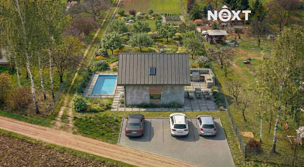 Přístup na pozemek je zajištěn ze zadní části po polní cestě, což nabízí větší soukromí a klidné zázemí mimo hlavní komunikaci.