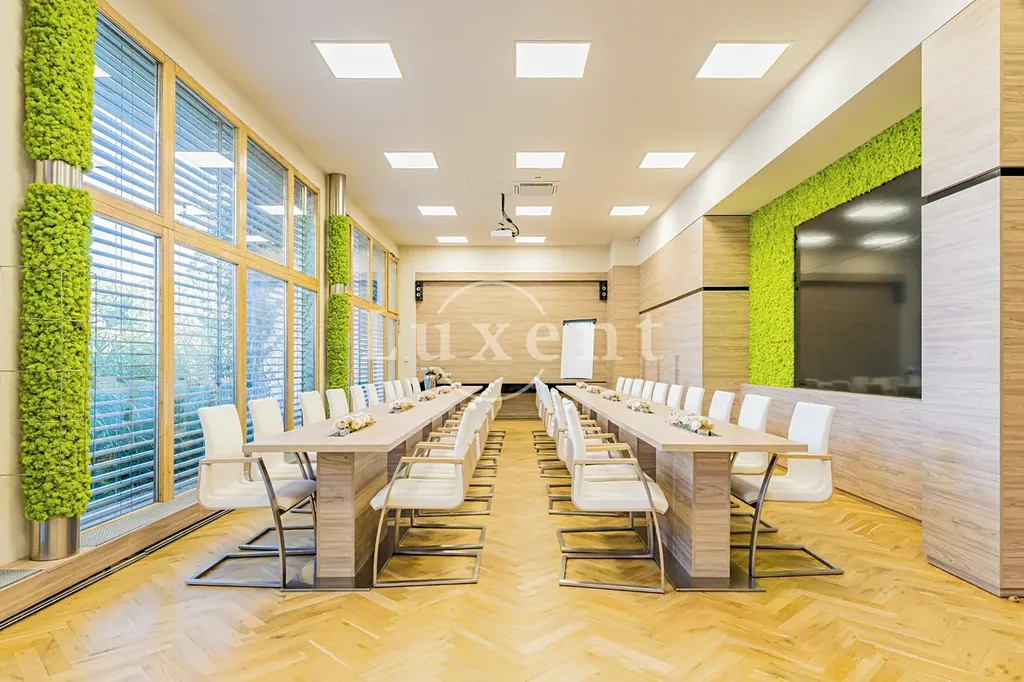 Budova má rovněž k  dispozici dvě zasedací místnosti. V objektu nalezneme také zrekonstruovanou restauraci s letní zahrádkou. Parkovací stání v areálu je za poplatek. Možnost převodu sídla firmy.