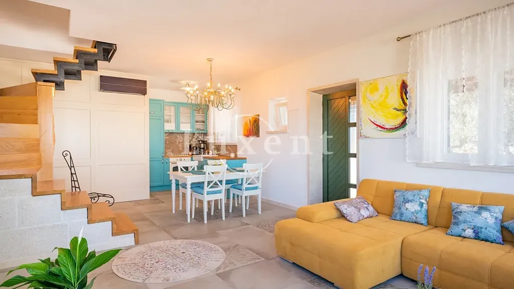 Nabízíme k prodeji exkluzivní dům s bazénem a nádherným výhledem na moře, který se nachází na odlehlém pozemku o rozloze 4722 m2, obklopený nedotčenou přírodou. Celková plocha nemovitosti činí přibližně 83 m2, což nabízí dokonalý prostor pro ty, kteří hledají klid a soukromí. Dům spojuje rustikální dalmatský šarm s moderním designem a je obklopen starými olivovníky, fíkovníky a cypřiši, což podtrhuje atmosféru soukromí a klidu.