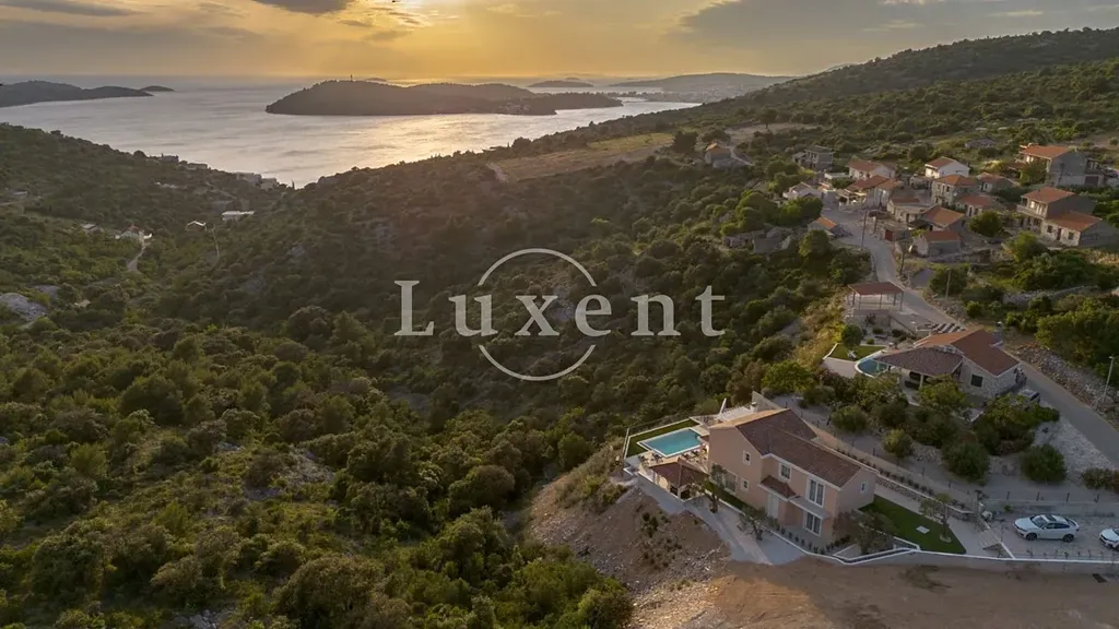 Nabízíme k prodeji luxusní vilu s bazénem a nádherným otevřeným výhledem na šibenické souostroví. Tato nově postavená nemovitost se nachází na výjimečném a klidném místě, ideálním pro ty, kteří hledají soukromí a okouzlující výhledy na západy slunce. Vila je umístěna v naprosté izolaci, s jedinou nemovitostí v okolí, což zaručuje maximální soukromí a klid.