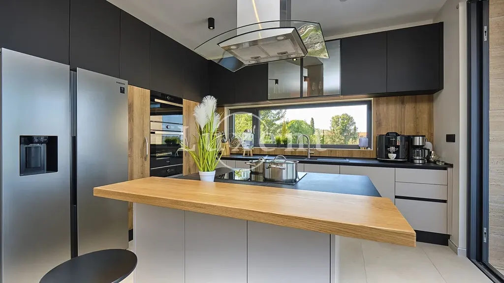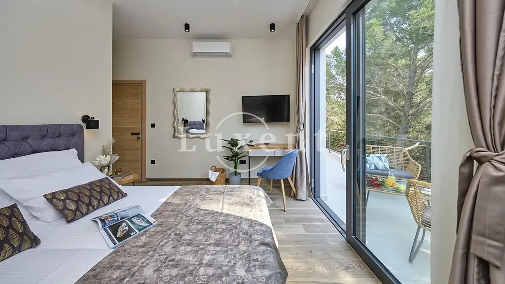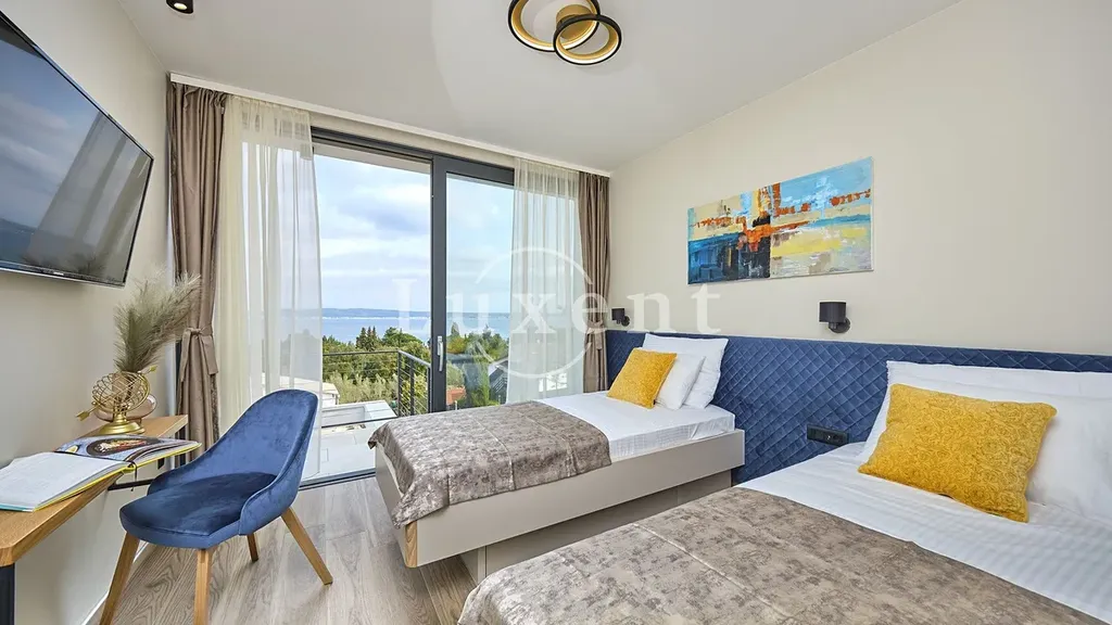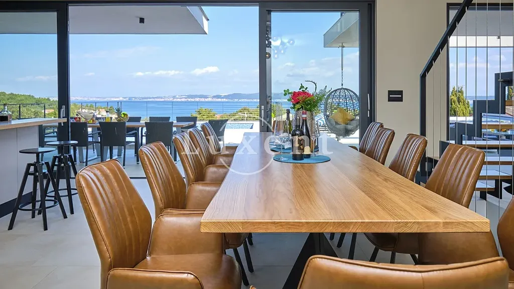 Nabízíme k prodeji nádhernou moderní vilu 400 m2, která se nachází v tichém prostředí s nerušeným výhledem na moře. Tato jedinečná rezidence, postavená na pozemku o rozloze 773 m2, se rozkládá na třech komfortních podlažích a nabízí elegantní kombinaci nadčasového designu, vysoce kvalitního vybavení a absolutního soukromí.