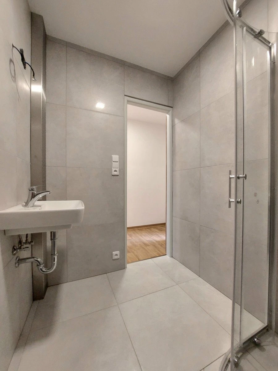Byt se nabízí částečně vybavený. Kuchyně disponuje myčkou, elektrickou troubou, varnou deskou a digestoří. Největší místnost - obývací pokoj - je volný pro Váš nábytek. Stejně tak 2 další pokoje. V koupelně po rekonstrukci je sprchový kout a umyvadlo. Toaleta je umístěna samostatně.