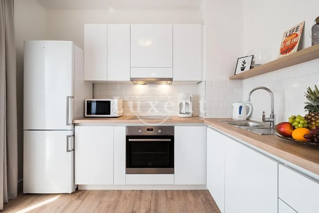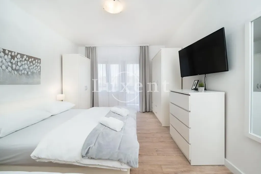 Nabízíme na prodej jedinečný apartmán o velikosti 63 m², který se nachází v první řadě u moře, pouze 50 metrů od pláže. Apartmán nabízí moderní a komfortní bydlení s jednou ložnicí a koupelnou. Byl kompletně a velmi elegantně zrenovován, což se odráží v jeho moderním vzhledu. Interiér byl navržen tak, aby maximálně využíval přírodní světlo a nabízel komfort v každém detailu.