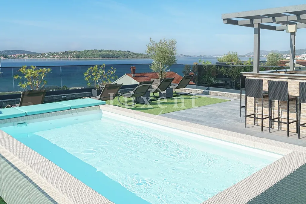 Nabízíme k prodeji luxusní penthouse o celkové obytné ploše 94 m2, který se pyšní jedinečným panoramatickým výhledem na moře a nachází se v klidné a malebné chorvatské vesnici Vodice u Jaderského moře.