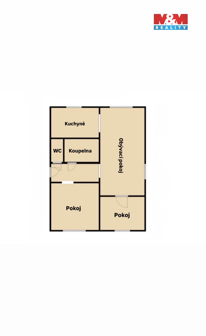 Dispozice bytu zahrnuje dva samostatné pokoje, obývací pokoj, kuchyň, koupelnu a samostatnou toaletu. K bytu náleží sklepní kóje a je zde možnost využívat kočárkárnu. Vytápění zajišťuje plynový kotel s radiátory.