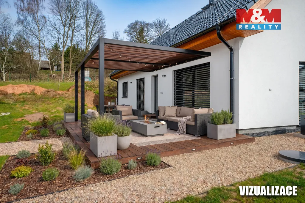 Novostavba bungalovu 4+kk ve Vrchovině u Nové Paky na konci slepé ulice je připravená k okamžitému nastěhování. Zděný, velmi úsporný dům s energetickou třídou B o užitné ploše 94 m² (zastavěná 124 m²) nabízí předsíň, chodbu, ložnici, dětský pokoj, pracovnu a prostorný obývací prostor s moderní kuchyní na míru, špajz, technickou místnost, koupelnu s vanou i sprchou a dvě WC s kvalitními vinylovými podlahami. Dominantou je elegantní krb, který dodává domu luxusní a útulnou atmosféru. Vytápění tepelným čerpadlem s podlahovým topením, napojeno na veřejný vodovod, septik a dešťovou vodu. Pozemek přes 1 000 m² je částečně oplocený a poskytuje soukromí. Velkou výhodou je možnost dokončení terasy, parkovacího stání a úprav terénu přesně podle vlastních představ – viz vizualizace. V Nové Pace je veškerá občanská vybavenost a dobré dopravní spojení do okolních měst. Kolaudace 03/2026, aktuálně probíhá zápis do katastru. Plánujeme prohlídkový den – zajistěte si svůj čas prohlídky nového domova !