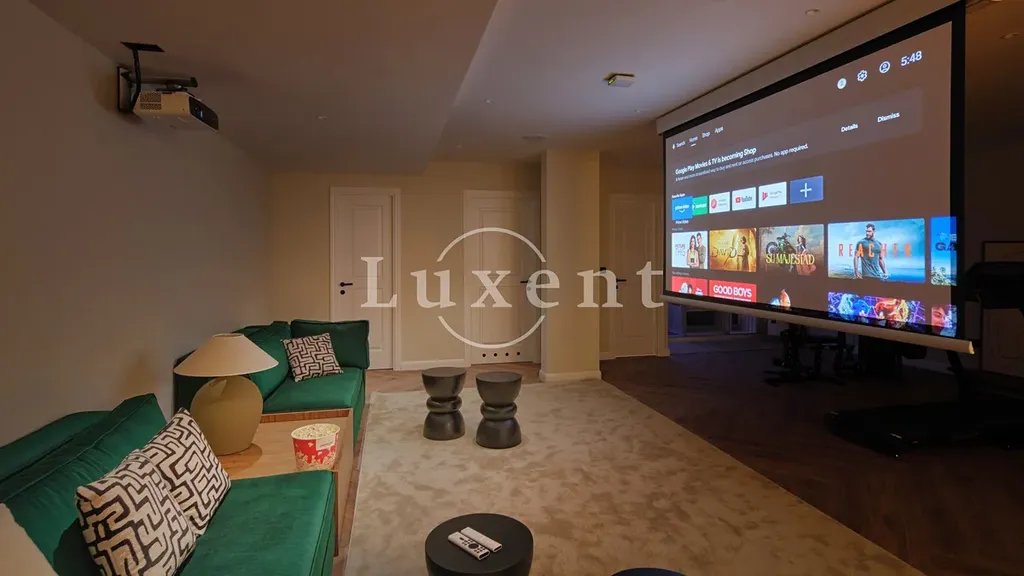Interiér vily je zařízen v hotelovém standardu a doplněn o nadstandardní vybavení, jako je vyhřívaný nekonečný bazén, jacuzzi, soukromá zahrada, domácí fitness, sauna, plně vybavená kuchyň a soukromé kino.