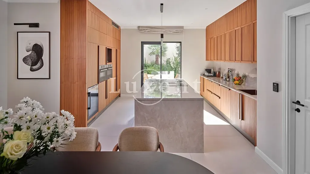 Vila je rozložena do tří moderních a precizně vybavených podlaží. Hlavní obytné patro nabízí ložnici, koupelnu, plně vybavenou kuchyň s jídelnou a prostorný obývací pokoj se vstupem na velkorysou terasu s vyhřívaným přelivovým bazénem, venkovním posezením a navazující soukromou zahradou osázenou středomořskou vegetací.