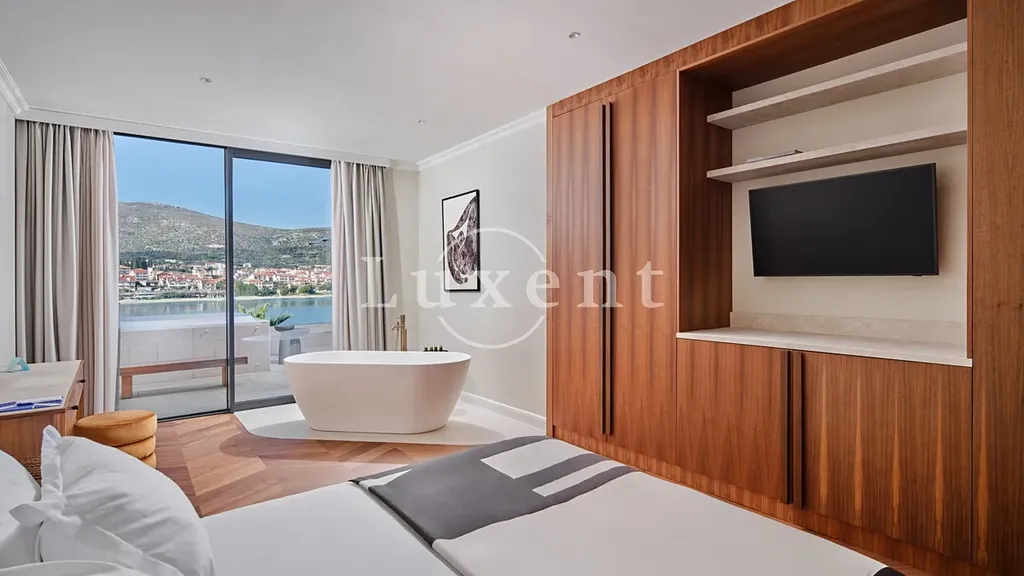 Nemovitost se nachází pouhých 10 metrů od moře a přibližně 780 metrů od historického centra Trogiru. Mezinárodní letiště Split je vzdálené pouze 4 km, což zajišťuje vynikající dopravní dostupnost.