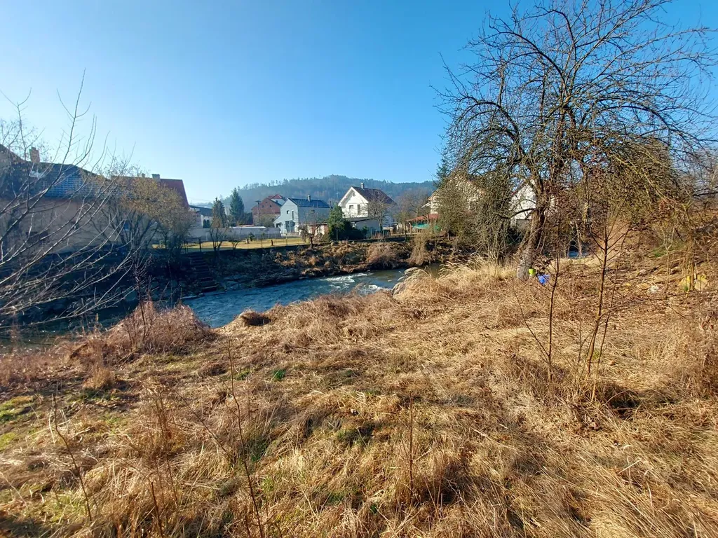 Ve směru od asfaltové komunikace je část pozemku rovinná a následně svažitá směrem k říčce Loučce, kde je kromě několika stromů situována stará studna.