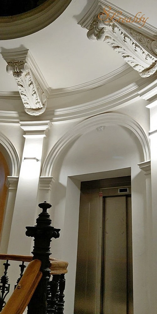 Celý barák prošel náročnou rekonstrukci, včetně interiéru, s obnovením původních architektonických prvků, instalaci nových inženýrských sítí a nového výtahu.