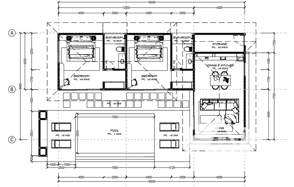 Každá vila je navržena jako 3KK s důrazem na jednoduchost, funkčnost a propojení s okolní přírodou. Obytný prostor s kuchyňským koutem plynule navazuje na tropickou zahradu se soukromým bazénem. Dvě ložnice poskytují dostatek soukromí, ať už pro rodinu, hosty nebo pracovní zázemí. Vše je připraveno tak, aby vila fungovala jak pro vlastní užívání, tak jako atraktivní investice.