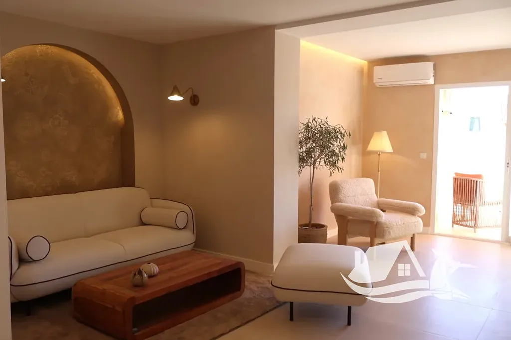 Byt o celkové ploše 112,27 m² nabízí promyšlený a vzdušný interiér, který prošel kompletní rekonstrukcí. Byly vyměněny všechny instalace, použity ekologické materiály a okna jsou vybavena dvojitým i trojitým zasklením pro maximální komfort. Hlavní obytný prostor tvoří prostorný obývací pokoj s bioalkoholovým krbem, který přirozeně navazuje na plně vybavenou moderní kuchyni. Tři ložnice poskytují dostatek prostoru pro rodinu i hosty a dvě koupelny zajišťují pohodlí při každodenním fungování. Klimatizace v hlavní části bytu a ložnici spolu se stropním ventilátorem v další místnosti vytváří příjemné klima po celý rok.