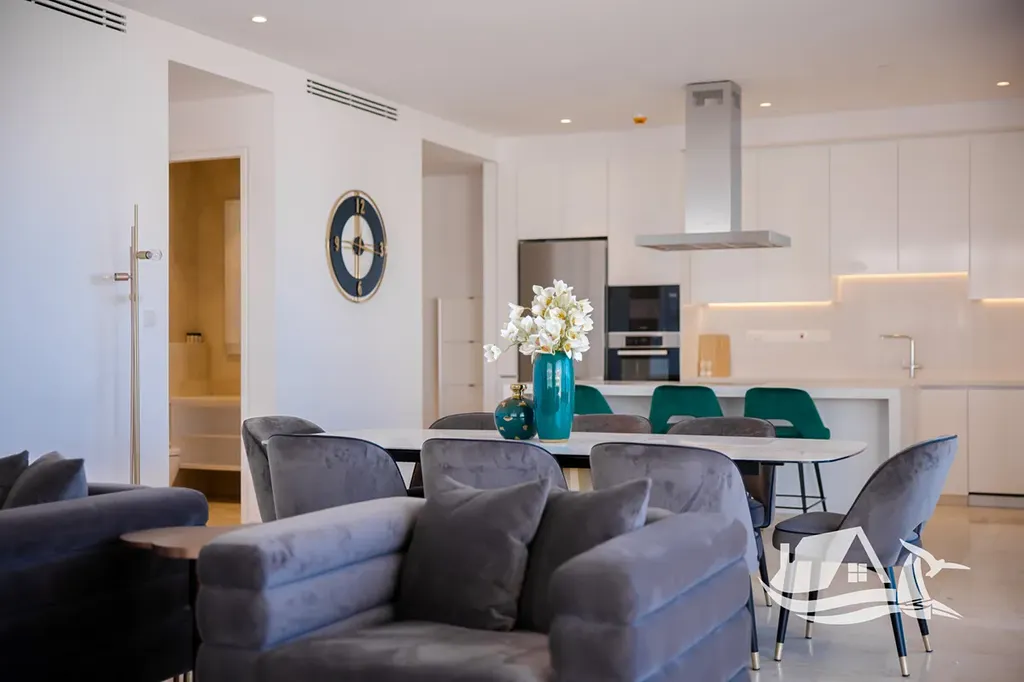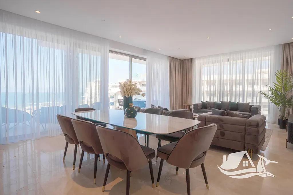 Nabízíme k prodeji apartmán o dispozici 2+1, situovaný v 1. podlaží moderní rezidenční věže v první linii u moře. Celková plocha jednotky činí víc jak 180m2 , jedná se o obrovský apartmán.