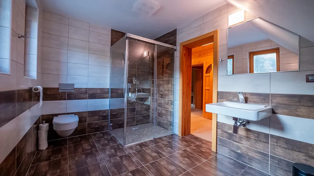Tato unikátní stavba, kombinující srubovou a zděnou architekturu, nabízí dvě nadzemní podlaží a dvě suterénní úrovně. V hlavních podlažích se nachází obytné prostory a garáž. První suterén je ideální pro relaxaci, zábavu nebo jako kancelářské zázemí. Druhý suterén slouží pro technickým zařízení, skladovací prostory a nabízí další garáží.